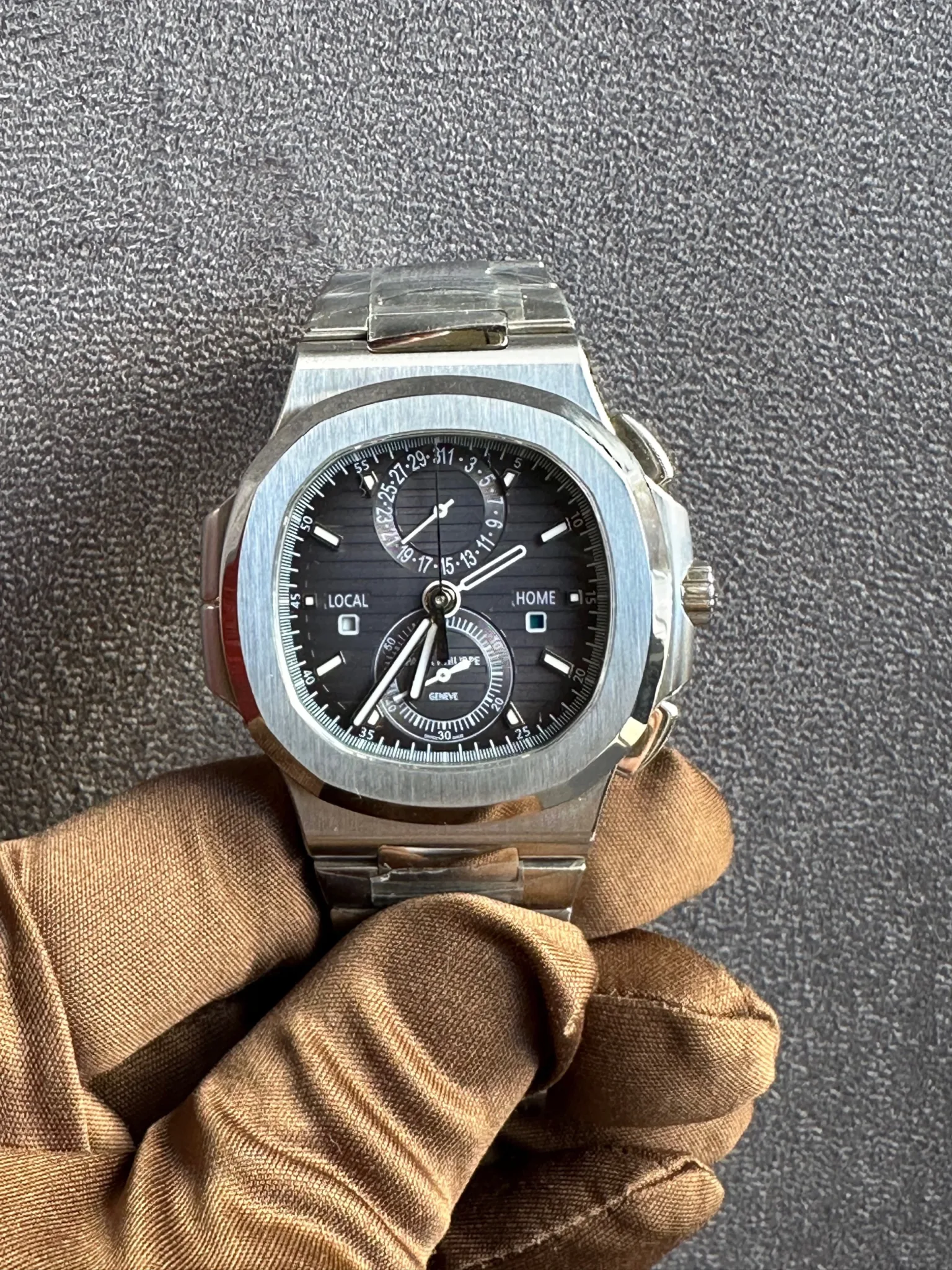 & Free ShippingBuy Best Patek Philippe Nautilus Travel Time Replica Watch in Dubai. Ticker 24 offers high quality Material-Stainless Steel, Movement-Automatic, Size-40.5mm.